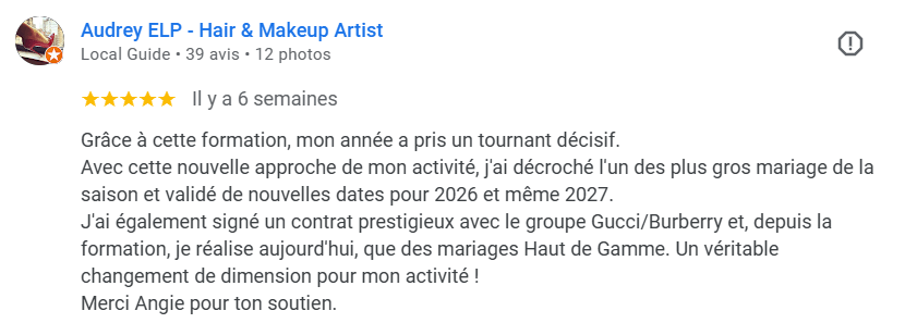 J'ai appris à repositionner mes offres, attirer une clientèle premium et optimiser mes prestations.