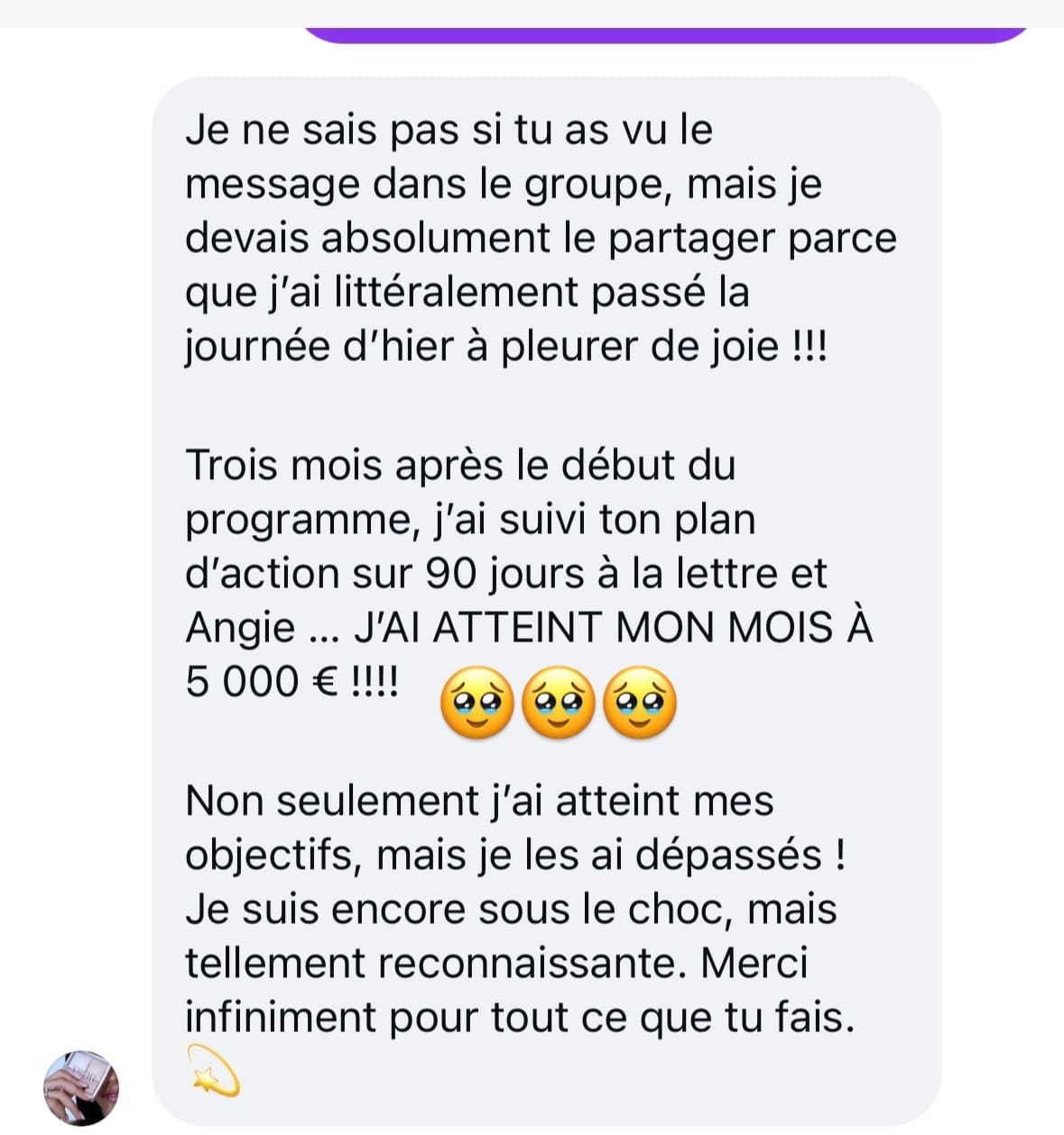 L'accompagnement d'Angie est exceptionnel et sa formation incroyablement complète.